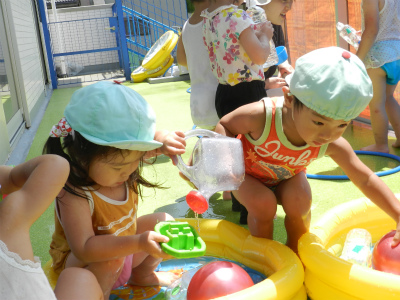 明日も水遊びできる~?と子どもたちは水遊びが大好き!!