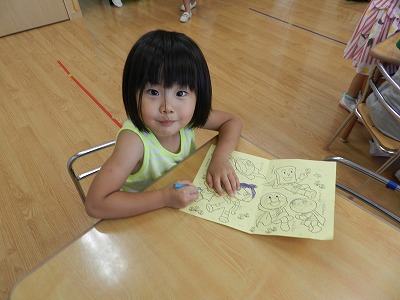 パンダさんも色鉛筆で色塗りをしていました* ̄- ̄)