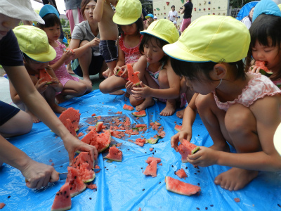 みんなスイカに夢中になって食べていました♡