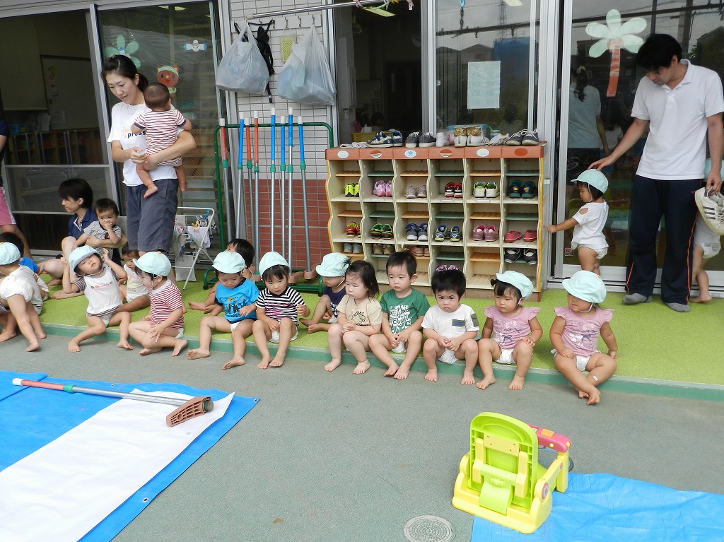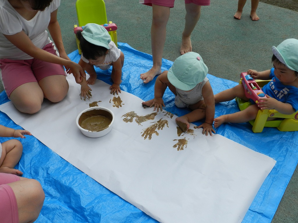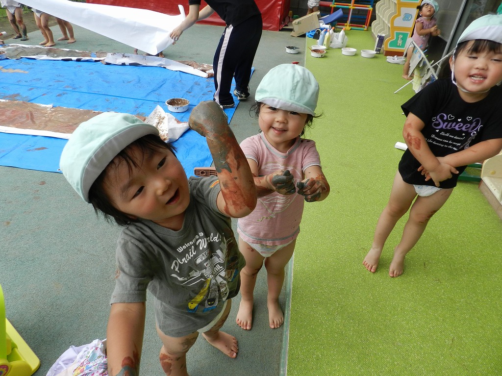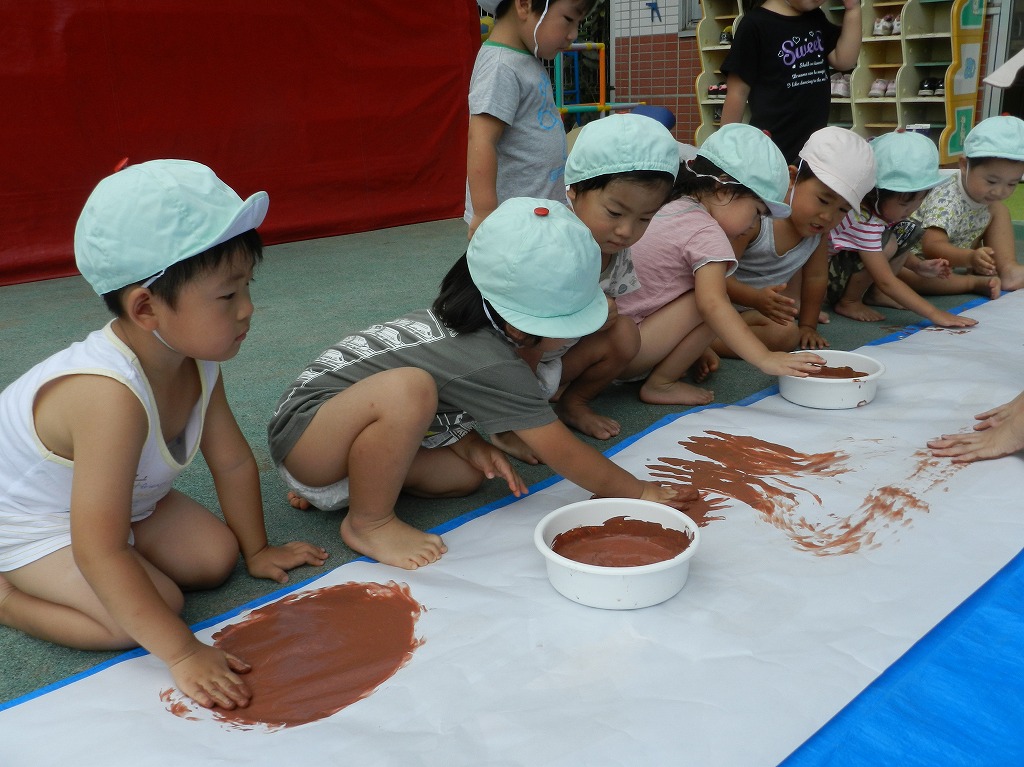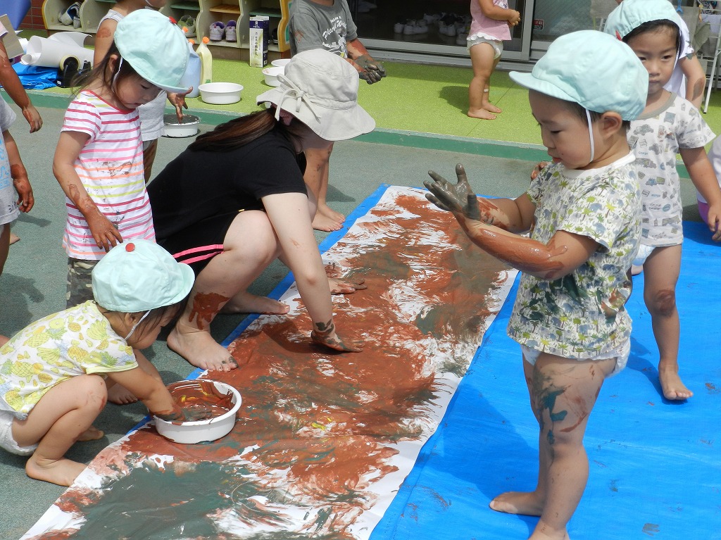 今日はみんなの手や足を使ってダイナミックに色塗り!