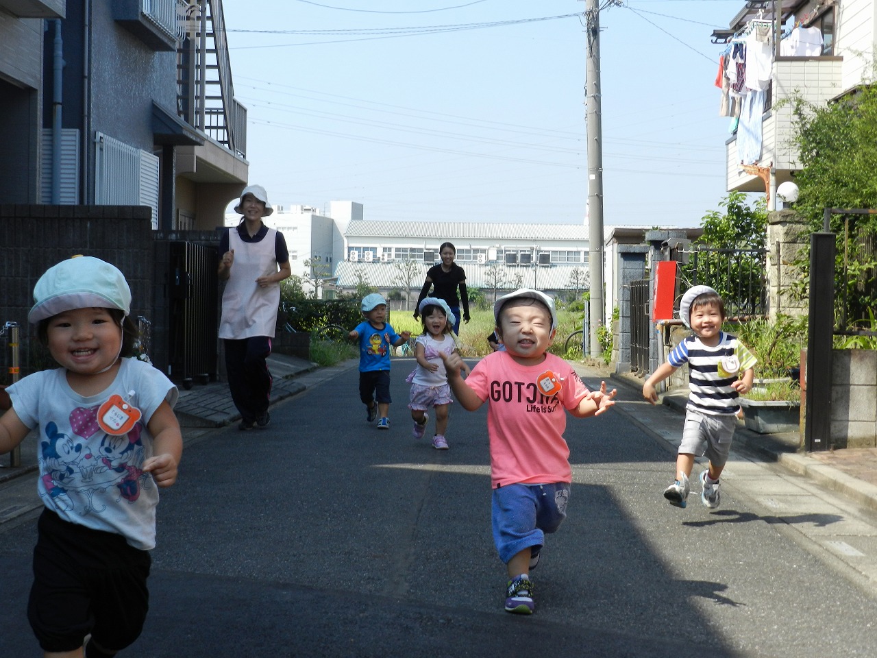 散歩中にもかけっこの練習!