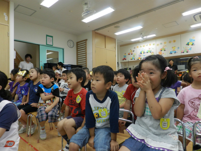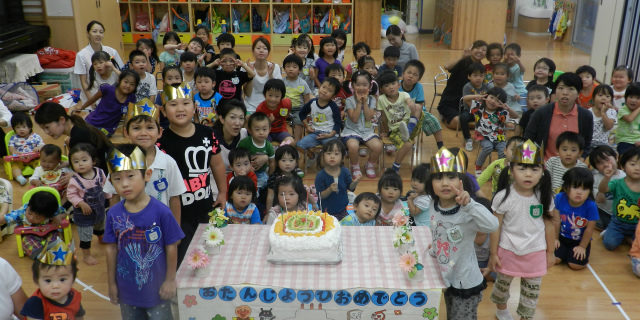 お誕生日会が終わっても子ども達は「まっかだな~」と