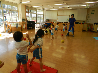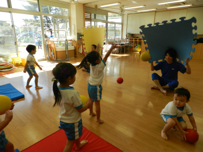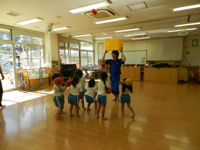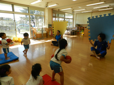 最後は籠の中にボールを入れてお片付けも楽しくできました♪