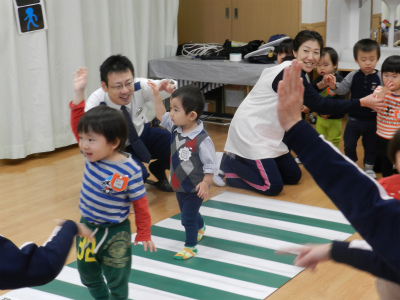 交通安全のDVDを見たり、実際に信号を渡ったり、楽しく交通ルールを学ぶことが出来ました。