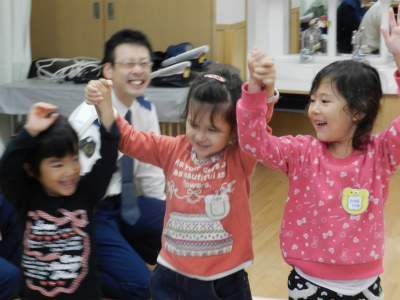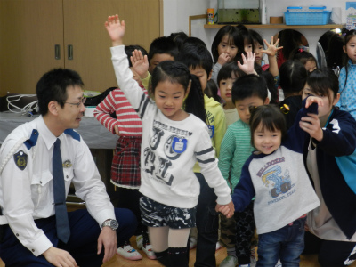お巡りさんの制服は子どもたちの憧れのようで「かっこいいねー」と子どもたちは目をキラキラさせていました。