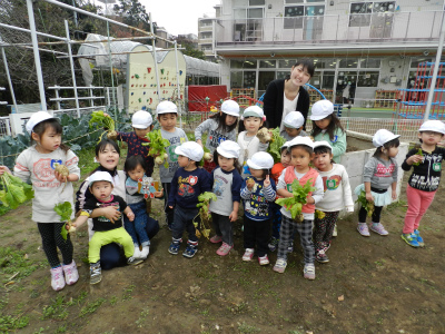 絵本みたいに大きなかぶではないけれど、自分たちで蒔いた種がカブに変身してとっても嬉しそうにしていました!(^^)!