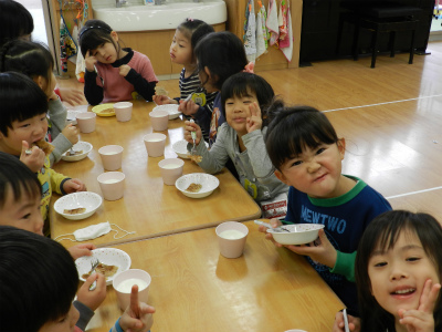 「美味しい人~」と聞いてみると「はーい❤」と沢山の手が上がります。
