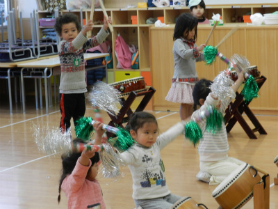 本番と同じ広さを再現して練習してみると隣のお友達との距離が離れていて少し心配そうにしている子もいます。