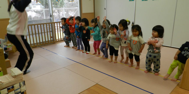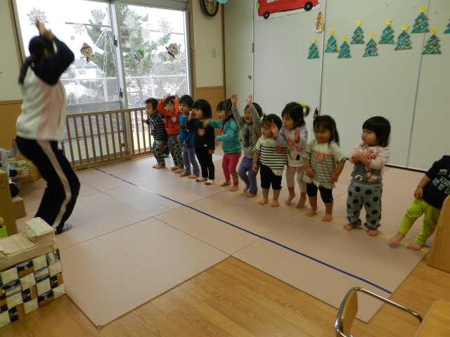 みんな一列に並び、先生の真似をしてとても楽しそうに練習していました(*^_^*)