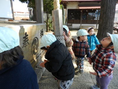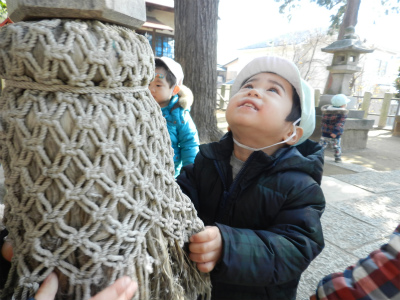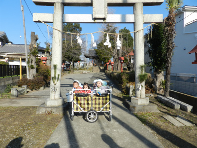 ラッコぐみ、イルカ組さんは近くの神社に初詣にでかけました。