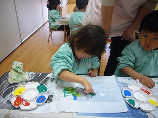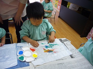 色んな色で自由に描いて自分のたこを作っていました