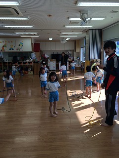 キリンさんはなわとびでにょろにょろ~と遊んでから、