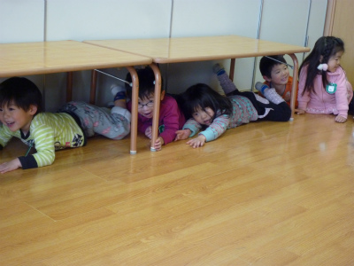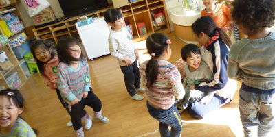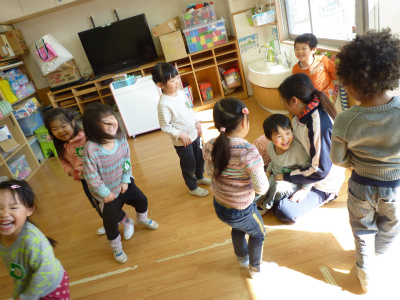 パンダ組さんは製作の前にみんなで楽しそうに遊んでいます。どうやら遊んだら製作頑張ろうねとお約束していたようです。