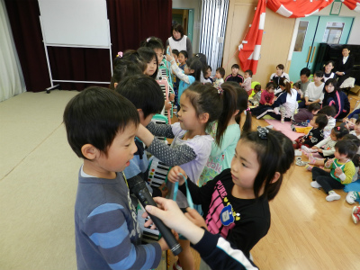 パンダ組のお友達はピアニカで「かえるのうた」を