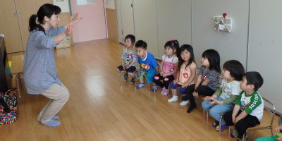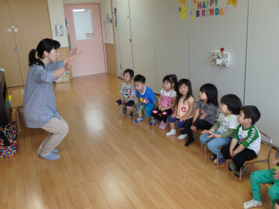 みんなきちんと椅子に座ってお話を聞いていますね♪