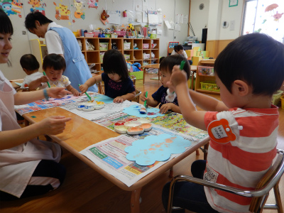 みんな楽しそうにタンポを使って色を付けていますね♪