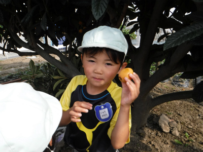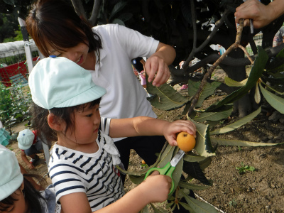 今日は、ライオン組のお友達がみんなで「びわ」を収穫しました(^^)!