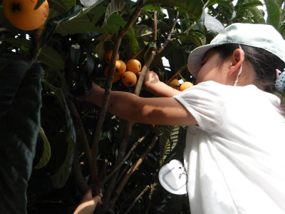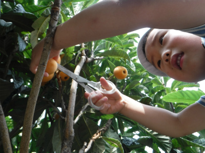 びわを収穫して、ハイ、チーズ♪