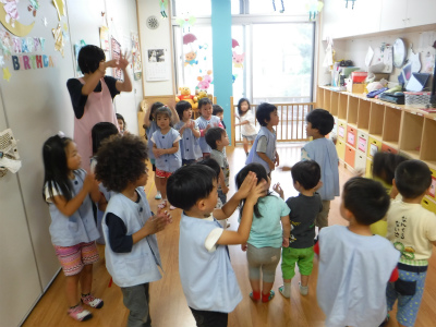 キリン組さんのお友達は、イルカ組さんのお手本になるように