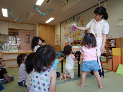 おやつの後は、水の色が変わる手品を見ました(^^)/