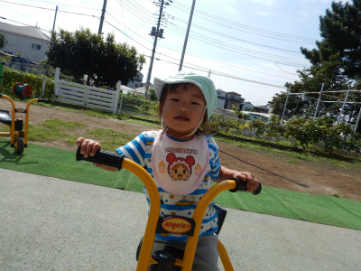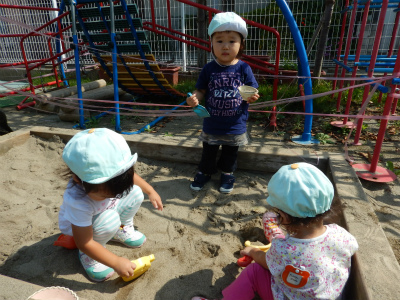 種まきの後は、園庭で三輪車や砂場・小さな