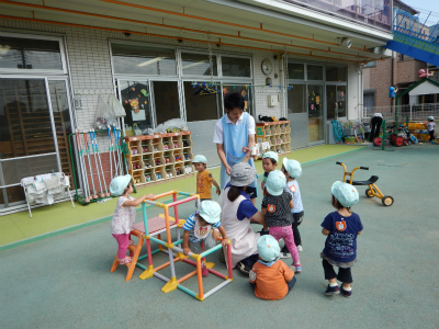 ジャングルジムを出して遊びましたよ!