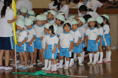 当日は雨が降っていて体育館での運動会と