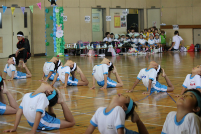 体操のてっちゃん先生の太鼓に合わせて