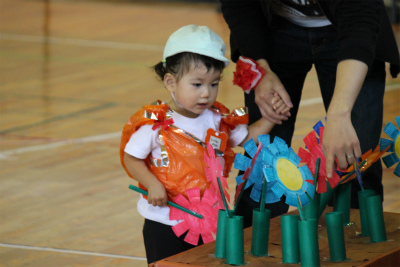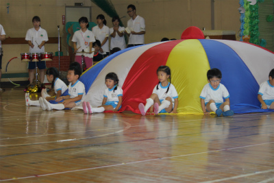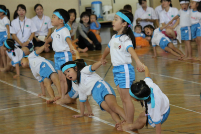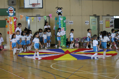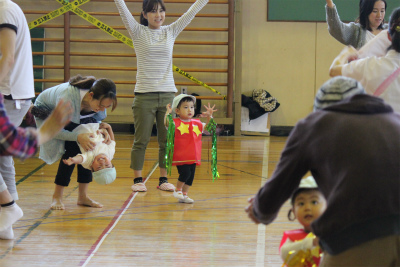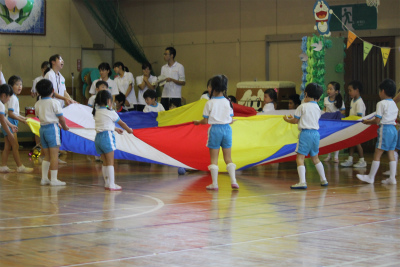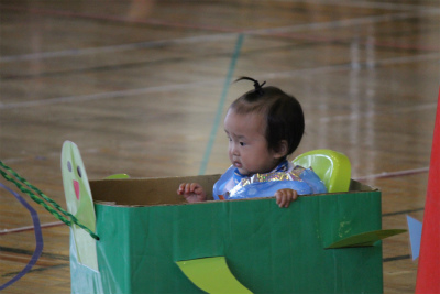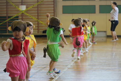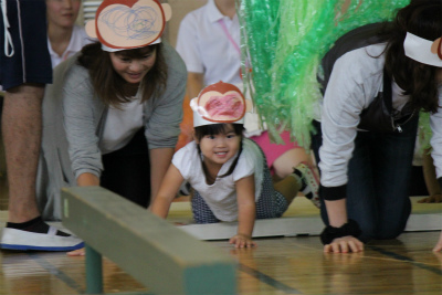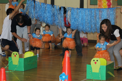 次はイルカ組による親子競技「おさるの大冒険」です!