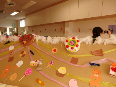 今年のテーマはお菓子の家だったので各クラスが