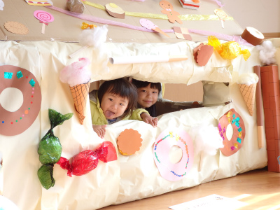 先生達で大きなお菓子の家も作りました(#^.^#)
