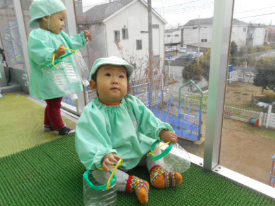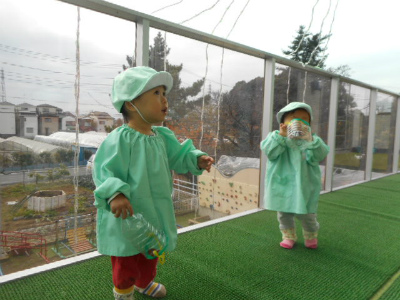 ラッコ組さんは、テラスに出てシャボン玉をしました(*^_^*)
