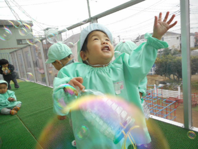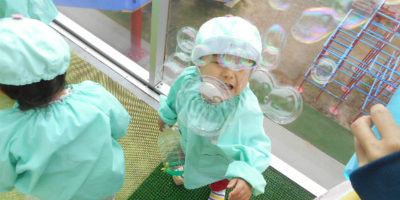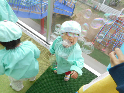 沢山出てくるシャボン玉を見て大喜びのラッコ組さん!