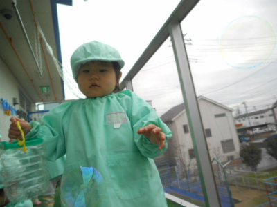 寒さに負けず、シャボン玉を追いかけようと走っていました!(^^)!