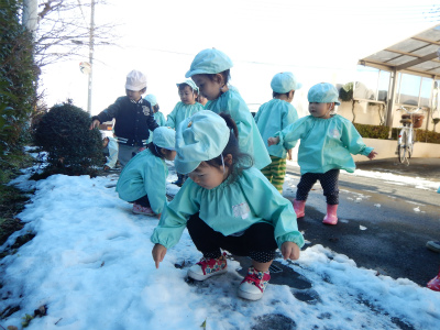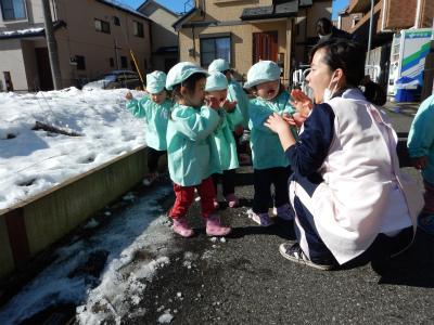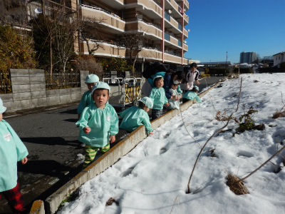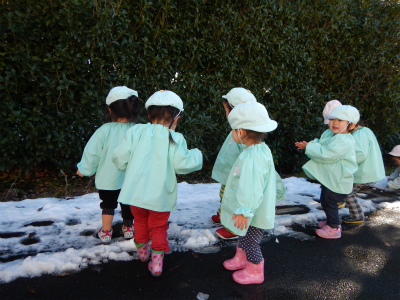 園の周りをお散歩して雪遊びをしました♪