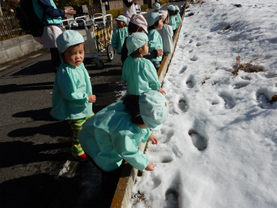 足跡を見つけて指を差している子もいました♪