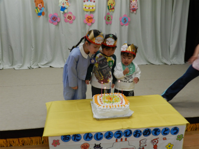 3月生まれのお友達は4人、先生は丸山先生でした(*^_^*)
