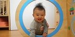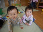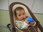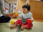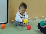 カラフルな色のボールをころころ、ぬいぐるみをじっと見たり・・・色々なことに興味津々なこども達です。