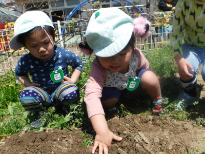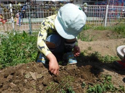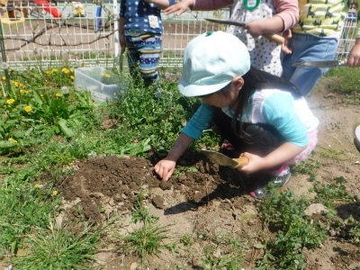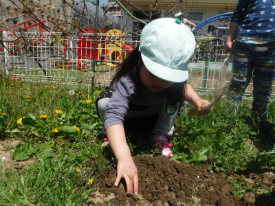 英語が終わると保育園にある畑に移動して