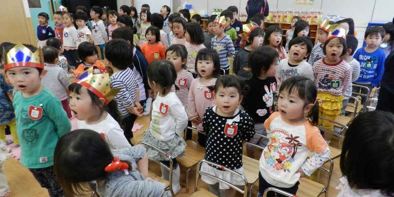 4月生まれのお友達のお名前が呼ばれて、舞台に上がりました!!