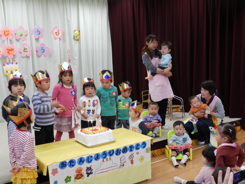 皆でお祝いのお歌を歌って、ろうそくをフーッと吹き消しました♪