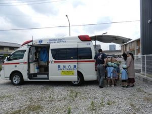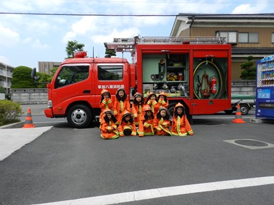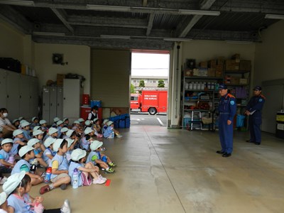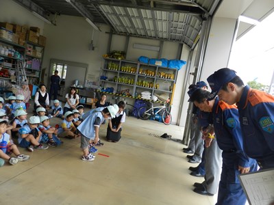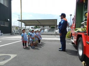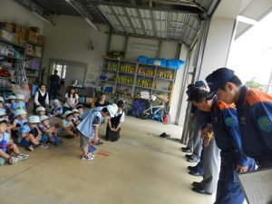 消防署に着いて隊員のお話や注意を良く聞きます。