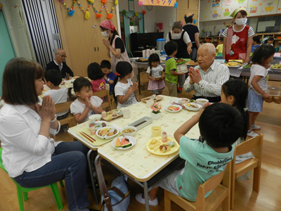 今日は地域の方をご招待して地域交流バイキングがありました。