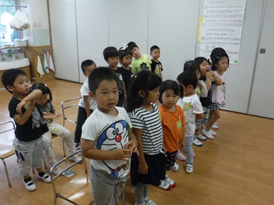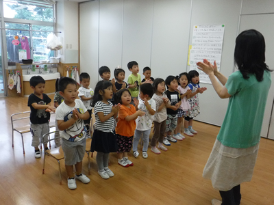 みんなノリノリ?歌を歌い手拍子をとり、楽しみながら