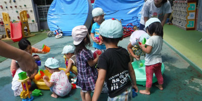 今日はとても暑かったので全クラス園庭に出て