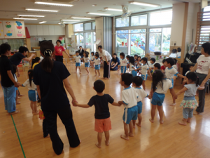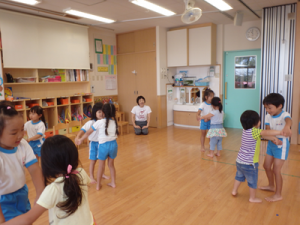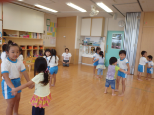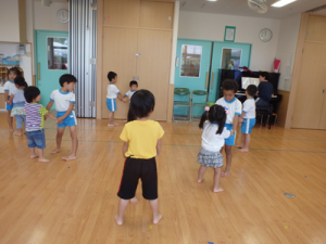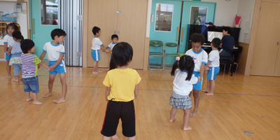 今日は午前中幼稚部でリズム遊びの