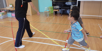 ライオン組は幼稚部合同で徒競走の練習をしました。