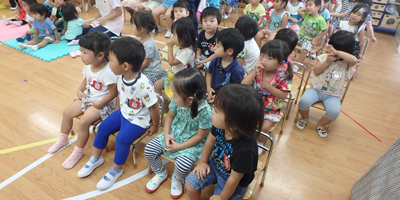9月生まれのお友達と7月のお誕生会をお休みしたお友達をお祝いしました。