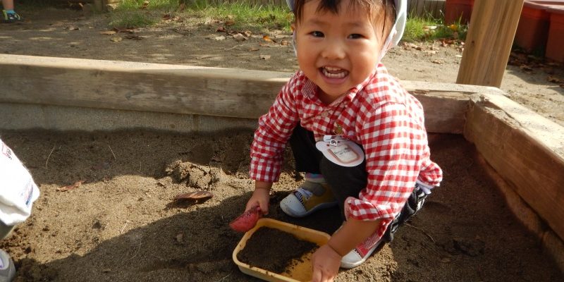 お砂場遊びでは、お砂で作った“おかず”や“おにぎり”をお弁当箱に詰めたりしました!