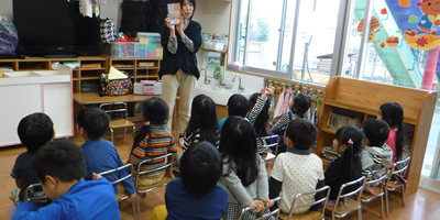 英語の絵本を読んでもらったりCDに合わせて踊ったり、